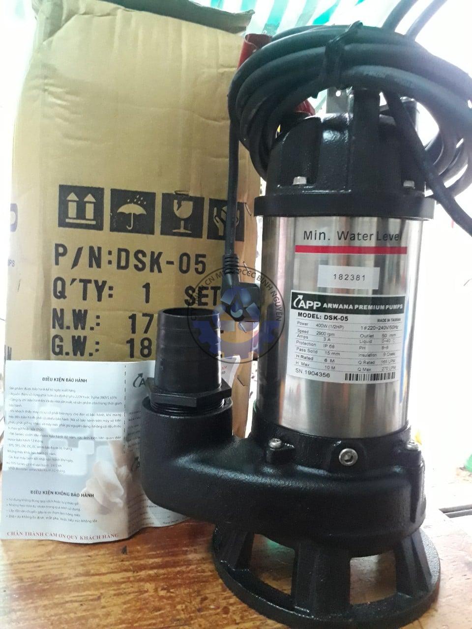 Máy Bơm Nước Thải Cánh Cắt Rác APP DSK-20T