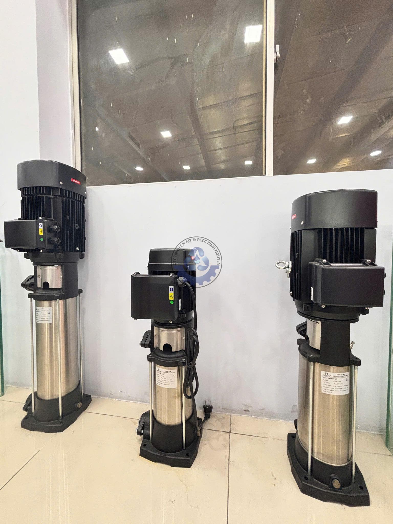 Bơm trục đứng: cho hệ thống áp lực cao, tòa nhà cao tầng.
